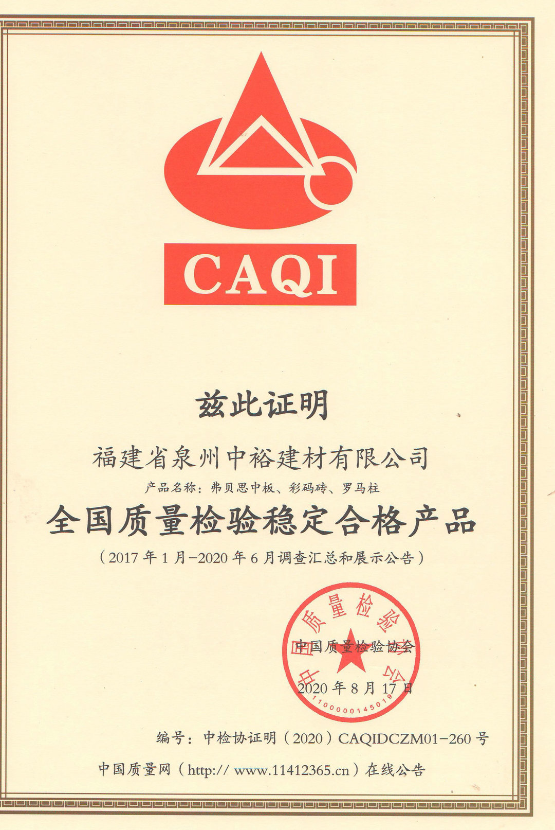 全国质量检验稳定合格产品