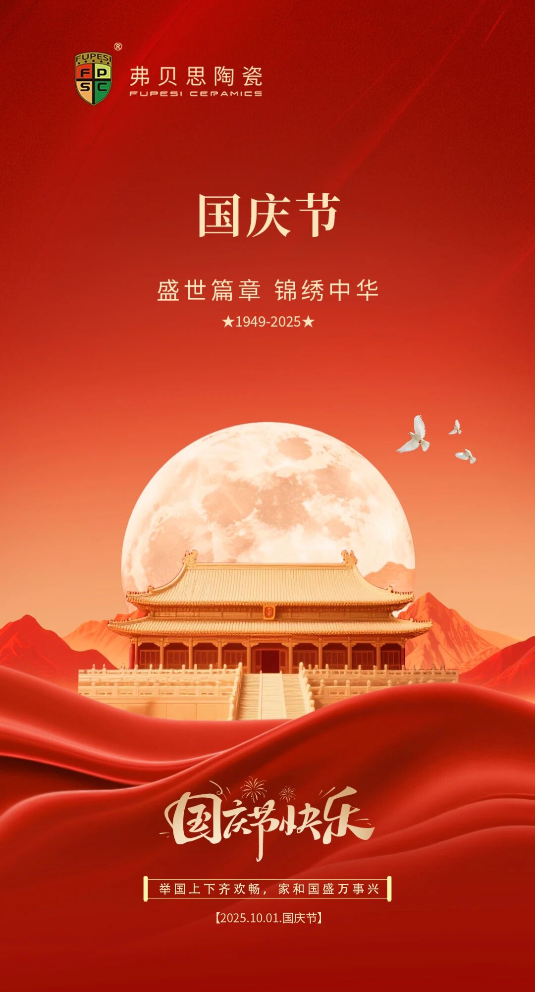 盛世篇章,锦绣中华,弗贝思陶瓷祝愿祖国繁荣昌盛!